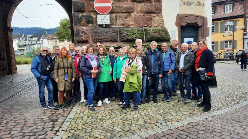Aufgrund tiefstehender Wolken hat Birgit das Programm kurzfristig angepasst und die Gruppe durch die schönsten Gassen Freiburgs geführt und dabei viele interessante Information über die Stadt vermittelt.
